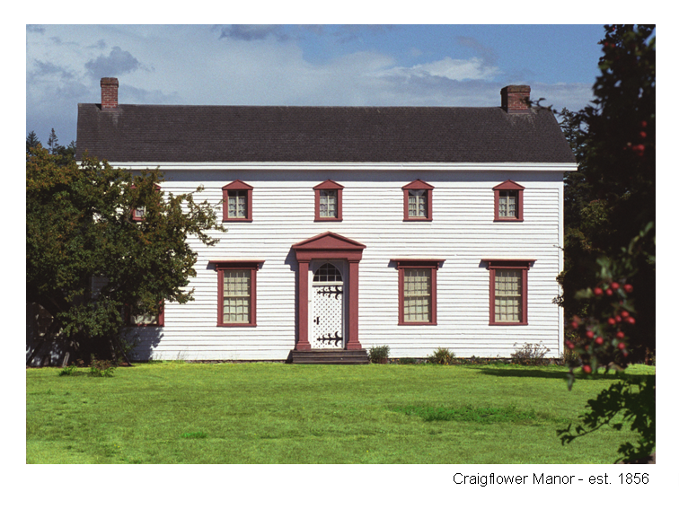 Work began at Maple Point farm in 1853 by Mr. Kenneth McKenzie and contracted carpenters and labourers that sailed with him from Scotland. The area was soon renamed Craigflower Country. Motivated to provide his family the living accommodations promised, but not in place for his arrival, McKenzie quickly had his team working on the farm dwellings and residences. Completed in 1856, the site ran several operations including a sawmill, a flour mill, a blacksmith’s shop, a brick kiln, slaughterhouse, and general store. McKenzie lived with his wife and six children in Craigflower Manor as the inaugural farm bailiff from 1856 to 1866.