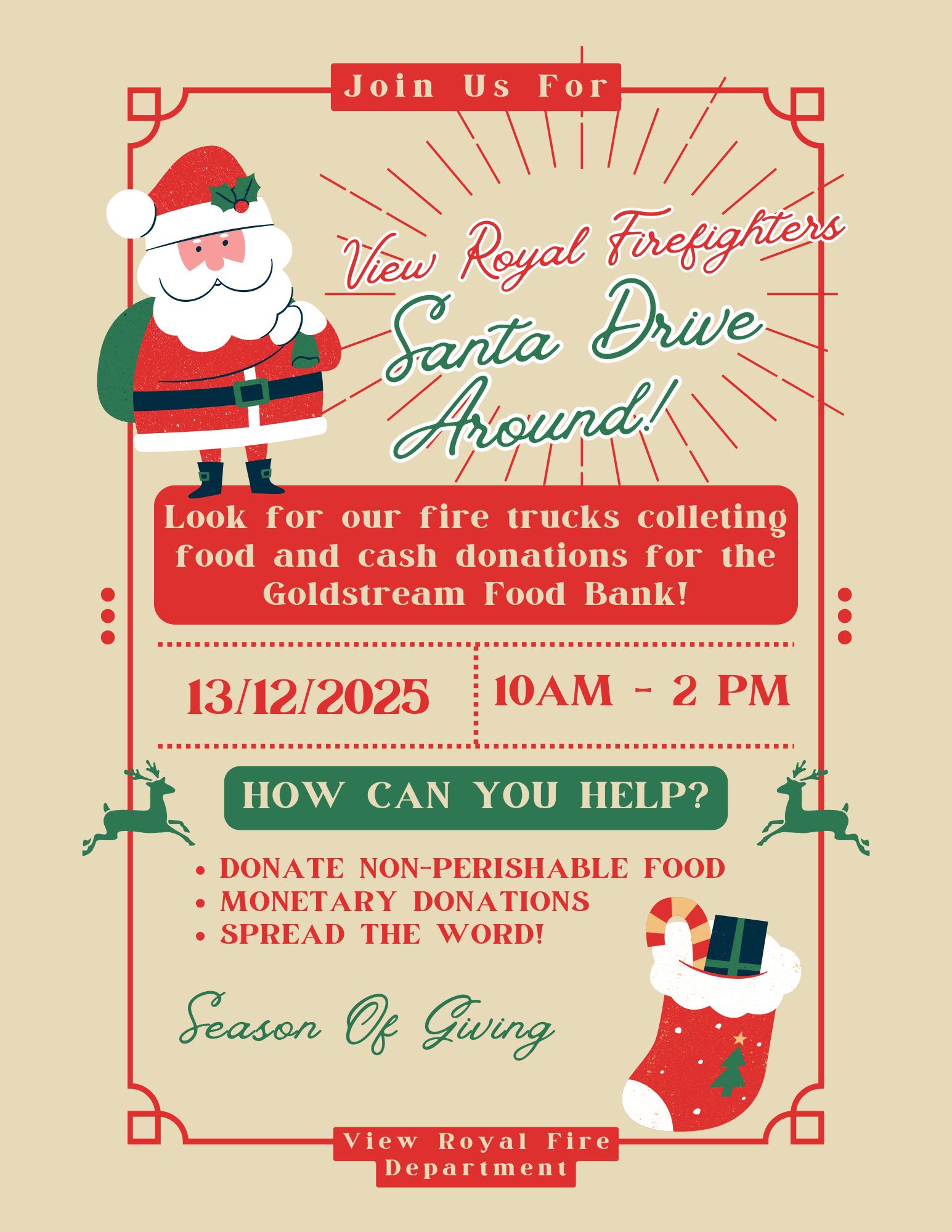View Royal Fire Rescue is spreading holiday cheer once again with its annual Santa Drive on Saturday, December 13.
