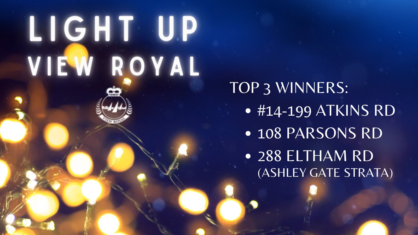 Each winner will receive a $50 gift card and year-long bragging rights as one of View Royal’s most dazzling decorators.