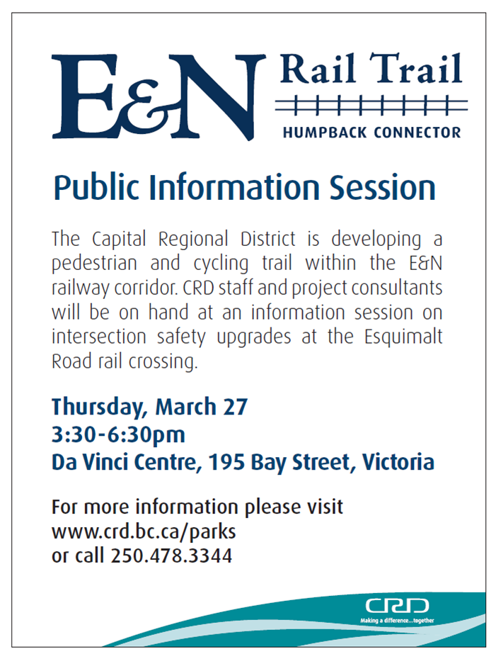 You are here: Home > What's New > 2014 Latest News > E&N Rail Trail Public Information Session - March 27