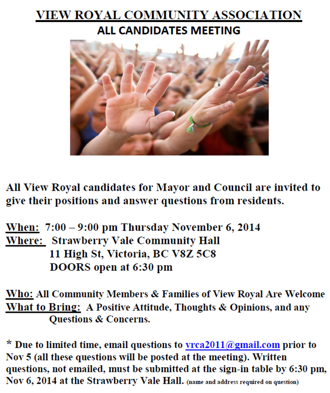 The View Royal Community Association is holding a meeting for all municipal candidates for the upcoming local government elections.Contact information: