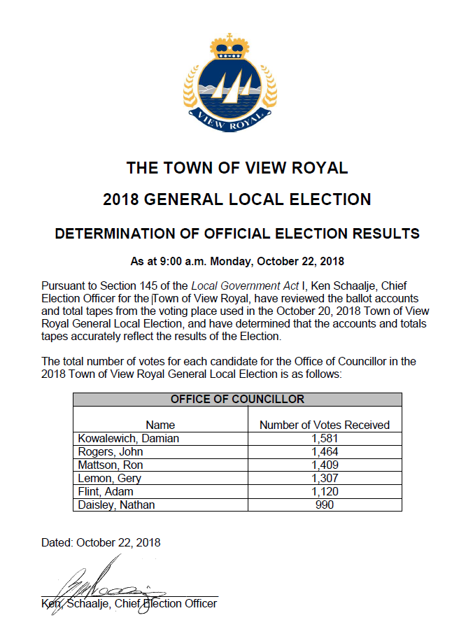 You are here: Home > What's New > 2018 Latest News > Determination of Official Election Results