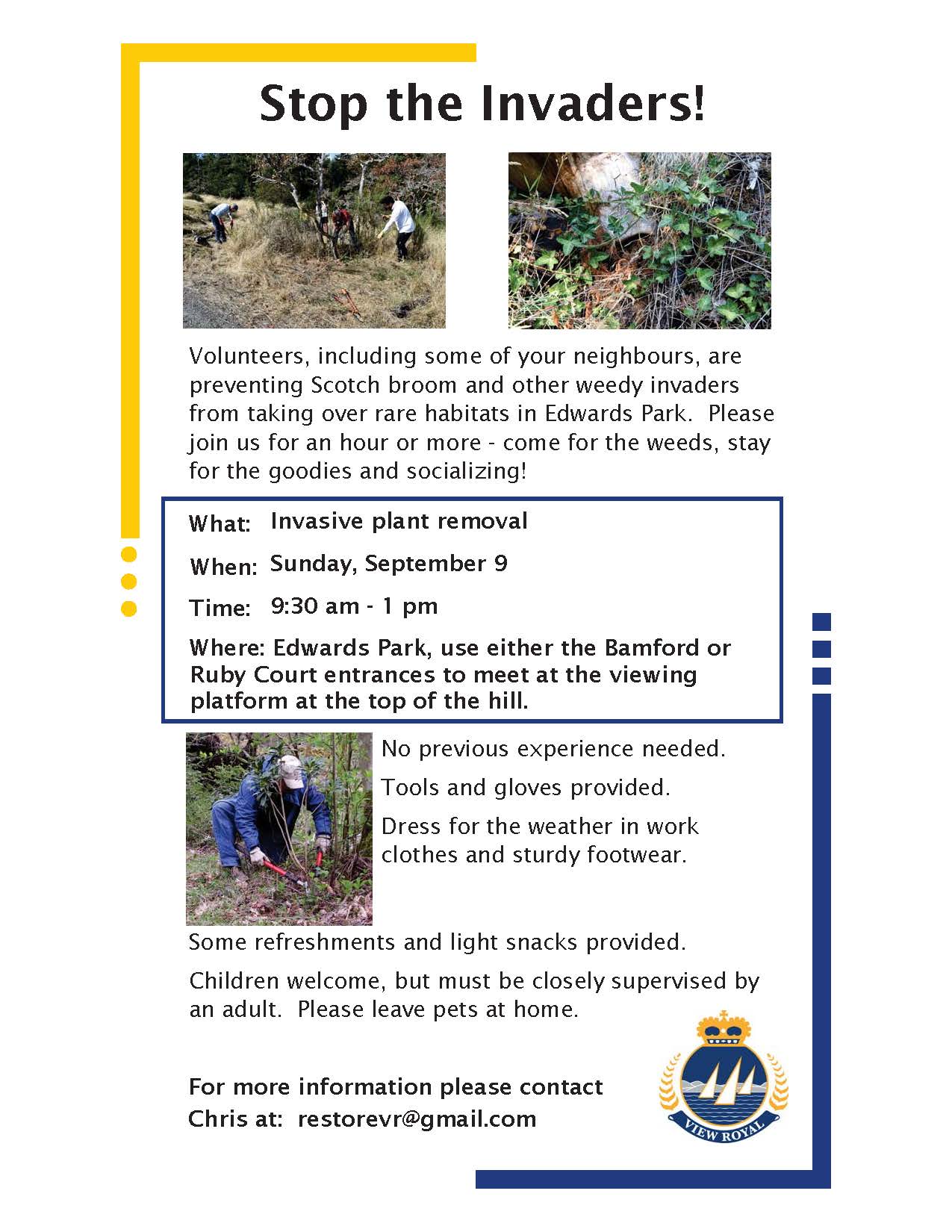 You are here: Home > What's New > 2018 Latest News > Invasive Removal Volunteers Wanted - Edwards Park - Sept 9