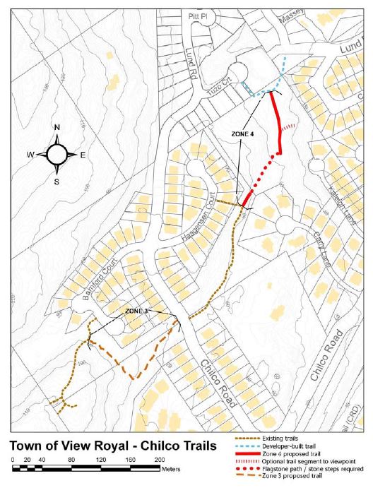 This summer, the Town of View Royal will begin construction on Phases 3 and 4 of the Chilco Trails Network as a continuation of the trails project in the Chilco Road area. Currently, there are two phases of the Chilco Trails that have already been completed and are a much loved recreation and pedestrian amenity. This project will link the existing phases to further enhance recreational opportunities and improve pedestrian connectivity within the neighbourhood and to adjacent neighbourhoods. The map below shows where the new trails are being installed. The project is scheduled to be complete in July 2018.